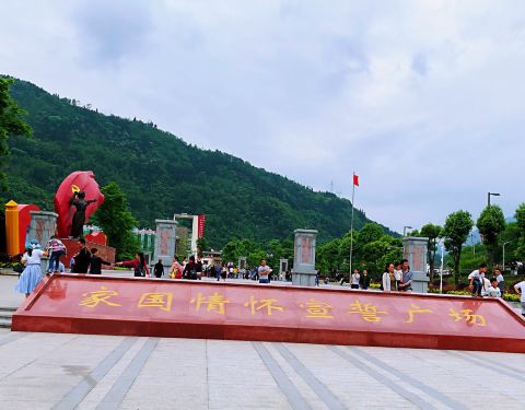 家国情怀宣誓广场是映秀震后恢复重建时修建的,广场旁就是璇口中学遗址,广场的设计体现着一种不可战...