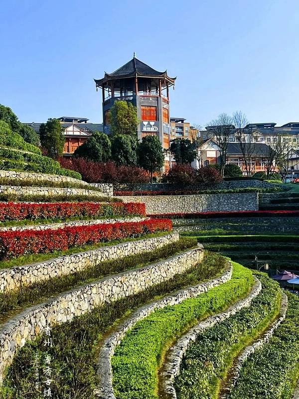 奢香古镇其实是一个很新的景点,是恒大集团结对帮扶大方县的精准脱贫项目。它不像传统的古镇,几条全是店铺的商业街就完了,而是在设计上结合了当地彝族文化,打造了一片仿照贵州梯田的中央花园,非常适合拍照发...