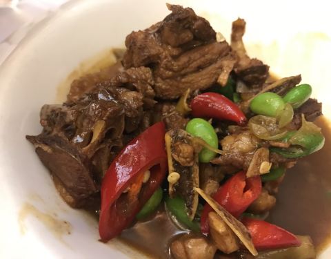 天目湖景区唯一的五星级宾馆中餐厅,虽说是配套餐厅,做的味道实在是赞。招牌菜就是响当当的大鱼头汤,砂锅的尺寸让所有人都惊讶,汤是用时间精心熬煮,呈现出牛奶一般的色泽和相当顺滑浓郁的口感,最后吃一点当地的乌米饭喂饱自己,其他的菜肴若是再尝试,就一点鲜味都没啦。