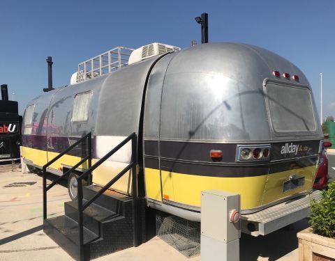 Last exit 是从迪拜到阿布扎比必由之路,极具特色,自驾途中值得停下脚步稍事休息,就连卫生间也是极具特色。 阿联酋的天气不算热,却是真的晒。对于一个紫外线过敏的人来说,我还是乖乖在室内拍照了。喜欢这面海报墙,摇滚海报墙前随便按下快门就是一张大片 据说这个主题美食广场的灵感来源于美国五十年代的公路文化,外面有十几辆复古卡通造型“卡车”,不同的餐车售卖不同的食物,我们的午餐就是在此处解决的,味道还不错!