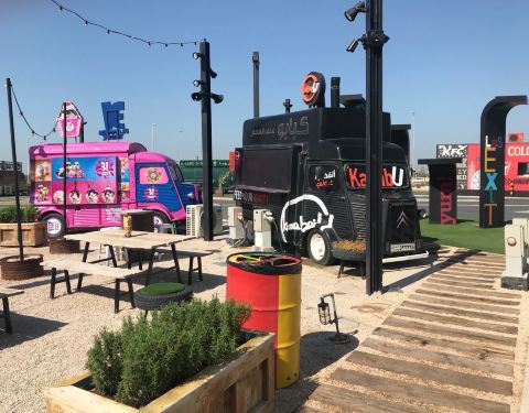 这才是网红休息区❗LAST EXIT TRUCK PARK货车公园 在迪拜开车去往阿布扎比的路上,会经过一个高速公路休息区,远远就会看到它的名字:LAST EXIT,千万不要错过啊❗❗ 它又被称为“汽车公园”,是一个汽车主题的美食广场,灵感来源于美国五十年代的公路文化。整个公园色彩明亮却又不失复古,数十辆复古卡通造型的卡车、货车们是一家家的餐饮小店 阿拉伯食物吃不惯?没关系,这里还有必胜客还有星巴克☕还有肯德基,总有一款适合你 妹子们哪怕不买吃不买喝的,也要停下来拍拍照啊太出片了❗ 闲逛的时候正好遇到一对从车顶钻出来的阿拉伯小男孩,看到我在拍照火速比了个✌,可爱炸了 推荐指数: 详细地址:Sheikh Zayed Rd - Dubai - United Arab Emirates 交通攻略:自驾 ⏰营业时间:24小时 门票:free 预计游玩时间:拍拍照买杯饮料买个汉堡顺便尿个尿~1个小时足矣(毕竟还要赶路啊) 实用tips 1⃣️停车免费哦❗所以走过路过不要错过呀 2⃣️如果可以,尽量挑选晴天来拍照哈,蓝天下五颜六色的车子太吸睛了呢可惜我去的时候是玩好法拉利主题公园回迪拜的路上,正好下完一场雨所以照片质量一般般……