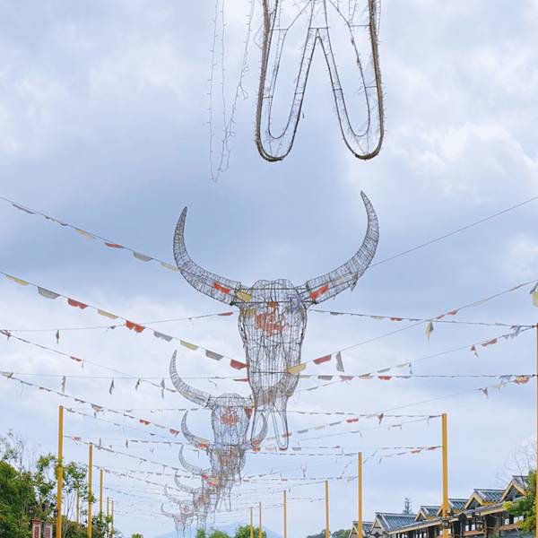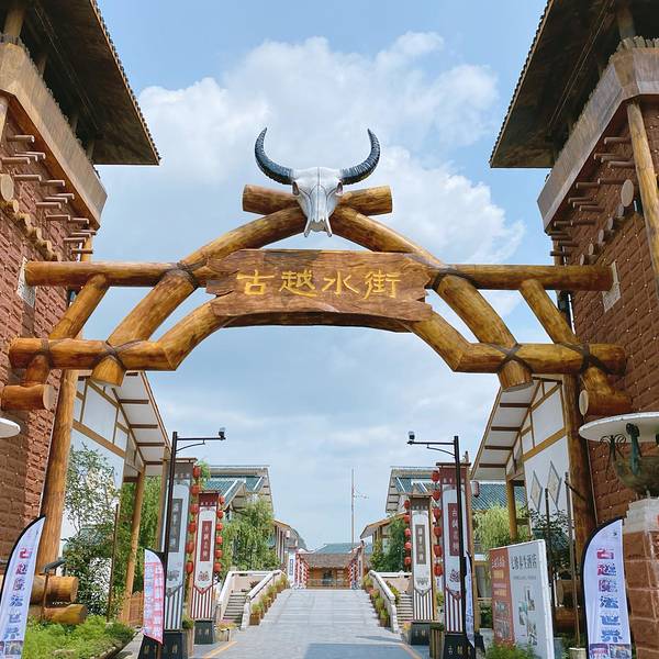 从象鼻山下山后就能乘坐观光车到古越水街,古越水街是关于古越主题的道养小镇
