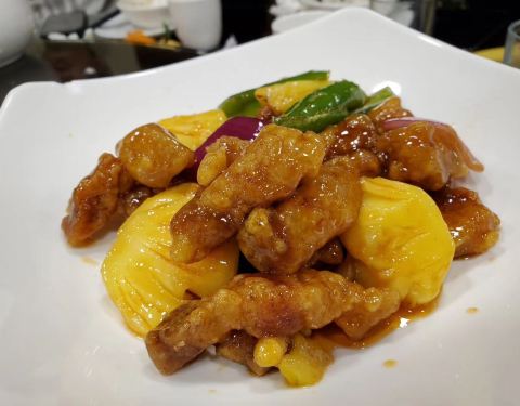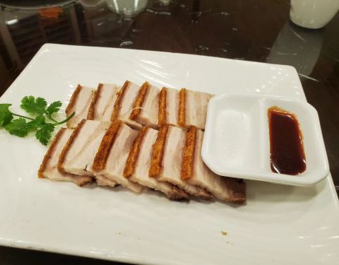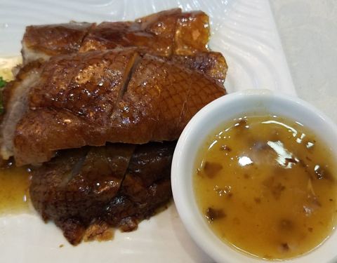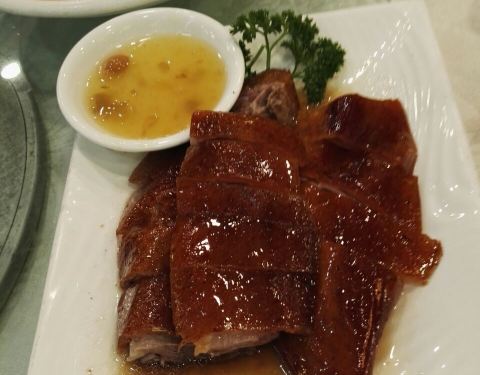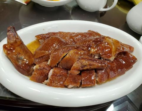 住在这家店附近,头天晚上六点过去吃,满座,没吃成。第二天晚上八点去吃,有位子了,但是人还是多。点了一个至尊烧鹅,味道还行,皮子酥脆,不油,肉也较软,鹅太大了,肉好厚。铁板鱼扣不知道用鱼的什么部位做的,有点脆,还不错。服务也还不错。