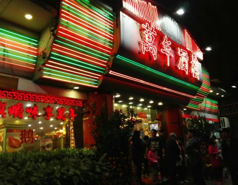 位于越秀区越秀南路的万年酒楼是广州市的一家老牌粤菜酒楼之一。主打的菜市式烧鹅,蒸鱼等及其他粤菜。大过年的也没休息关门,而是继续营业,所以宾客如云,菜价不贵。白切鸡和烧鹅做得也不错。九节虾很新鲜,几个素菜如捞起支竹和竹笙亦可以。地方略挤迫,有二楼,BB凳数量不够多。