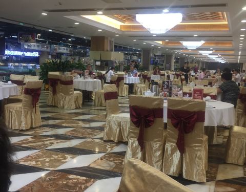 这应该算是比较高档的一家餐厅,价格完全就是高端消费,10人消费水平大概在2500到3000元。海鲜很新鲜,不过价格偏贵很多,都是按克,按两计算的。偶尔会有部分海鲜优惠,做工也会收费,比如白灼一斤收多少元,盐焗又是多少这样。环境很好的,地理位置也好,容易找。服务态度好。