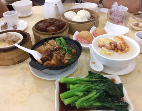 关于口味:黑椒牛仔骨香味浓郁,肉质滑嫩,牛肉拉肠比较鲜美,龙疍粥香浓粘稠,虾饺太小,味道不及许多酒家,南瓜煎堆还不错,混吞一般,萝卜糕普通,茶位8元一人。 关于环境:用餐环境一般,适合喜欢热闹的食客...