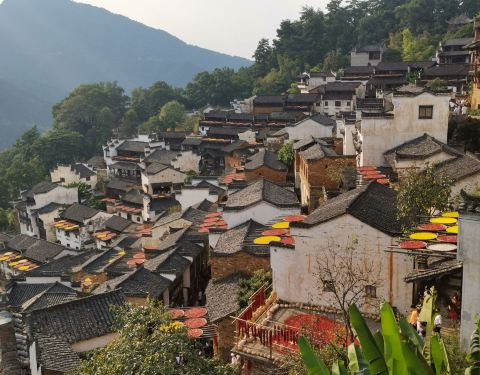 悬浮屋是婺源篁岭景区西侧花溪水街中部的一处景点,外观是土黄色的坡顶建筑,一面墙以钢结构支撑,外部包裹建筑装饰材料,形成视觉错觉,像是座基和屋顶部分是断裂开的。篁岭还有一处怪屋,与此类似,都是利用视...