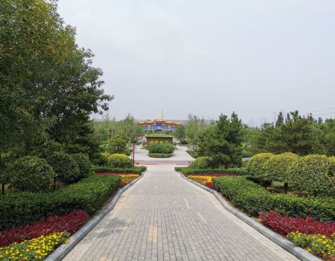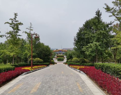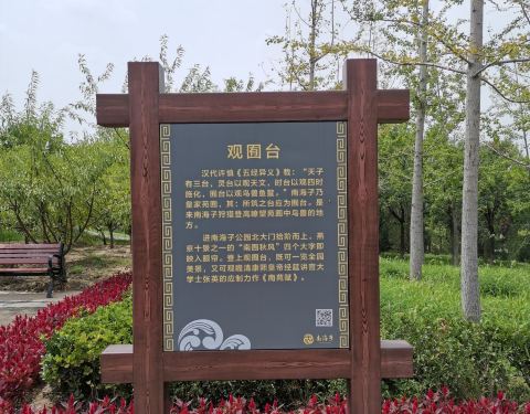 从北门进去首先映入眼帘的是一个写有“南囿秋风”,用绿植做的照壁,拾阶而上,登上公园的最高点,体验当前皇帝纵览全园的感觉,心情好极了。