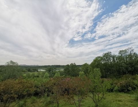 南海子公园二期近期开放,北门处有一个高大的牌楼,进门后首先看见的是一块漂亮的巨石,然后是用绿植做的南囿秋风的照壁,登高远望,美极了。