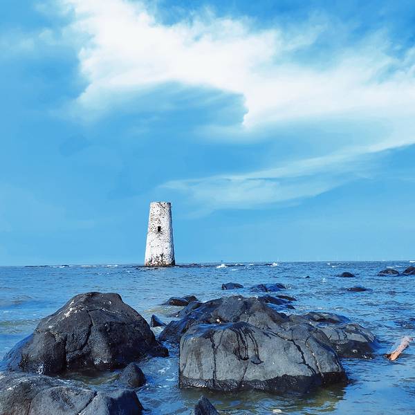 正因如此,这里只适合嬉水,不适合游泳,标志性的建筑是一座 灯塔 ,看着已有数十年的历史,历尽风吹雨打
