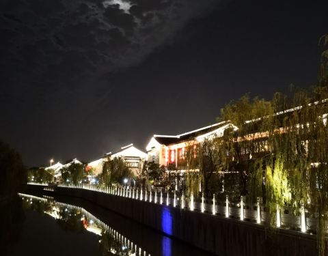 菊泉故里,在刘行的,虽然我也住宝山,但是宝山这边到宝山那边也是挺远的,十几公里也要一个多小时,何况昨天是先宝山到闵行天街,再到宝山天街,再回去,一天一百多公里哟,我真厉害。 菊泉故里不是只有牌楼这块的,宝山天街出去对面就可以开始走走逛逛了,沿途挺长的可以慢慢看看风景,晚上会亮灯就像一些水乡古镇了。