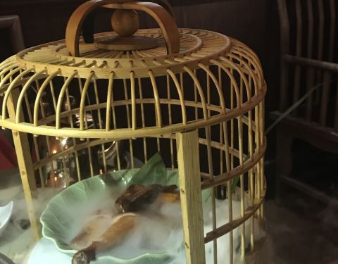 晚上老同事在洞庭﹒佬麻雀(华港店)请我吃饭,谈点事情。 洞庭﹒佬麻雀(华港店)位于中山大道西华港商务大厦二层,附近有公交车BRT华景新城站,交通很方便。 这家新派湘菜餐厅,装修的非常有特色,用湖水、荷花、花船等,展示出洞庭湖一带的风土人情,环境让人感到很舒适、很放松。 豆浆一品鲜 用豆浆来煮黄骨鱼、鲳鱼等,并放入虾和白贝,鱼汤非常鲜甜,带有浓浓的豆味。 脆皮烧鸡 用个鸟笼上来,并放了液态氮,并散发出烟雾,颜值非常高。烧鸡味道很好,皮脆肉嫩,一口咬下去满满的肉汁。 泰椒浸花螺 这个菜同意颜值很高,会喷烟雾,花螺上面有个透明的液氮做成的原形罩。花螺很大只,很新鲜,非常入味。 总而言之,洞庭﹒佬麻雀(华港店)颠覆了我对湘菜的印象,装修漂亮;菜品颜值高,辣度适中,适合像我这种不太能吃辣的广州人;服务态度非常好。看来下次还会再来洞庭﹒佬麻雀(华港店)的。