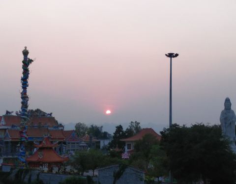 在没有来到这里之前,就看到网上有很多朋友介绍这个宫殿,原本并没有太多的兴趣,但是因为时间还是挺多的,就进来参观了一下。有人说这是中国人投资建设的宫殿,所以供奉着中国人信仰的观世音菩萨。但是我在寺庙里面却没有看到一个中国朋友,不过里面的一位大师会多多少少讲一些中文,而且双方还交流了一些东西。当他得知我正在这里度过中国的新年的时候,非常开心,并且送赠送了我很多当地的美味的好吃的东西。后来走出寺庙,在旁边的告示上面却发现这里是会为大家免费供应水果和食物以及水的,真的是一处非常美的寺庙,特别是在夕阳西下的时候。