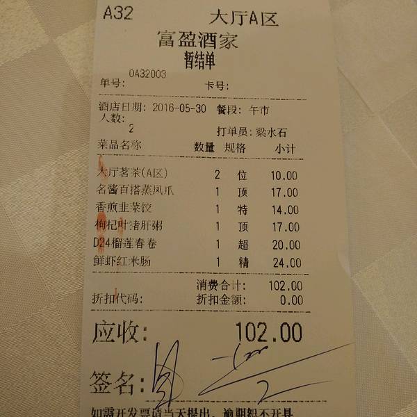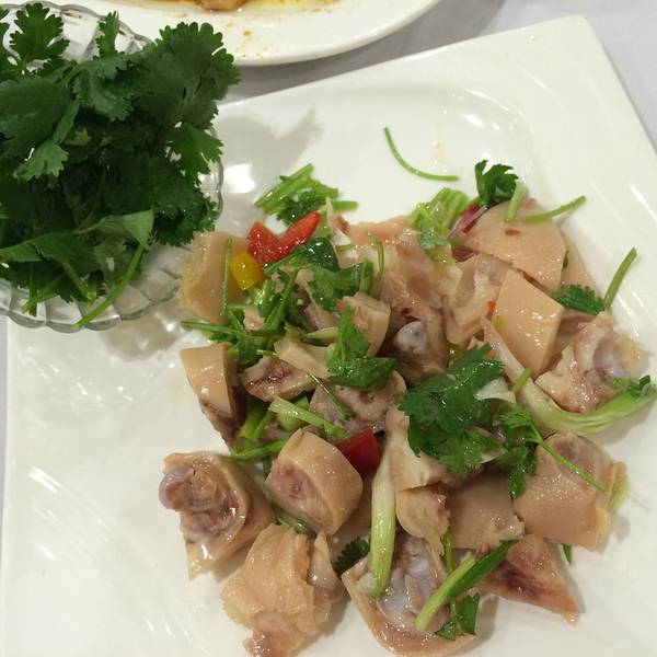 富盈的出品味道大多数不错,分量是比较精致。经常来,就说说吃得不错那次的几个菜吧,五个大人点了六个菜:#香葱捞猪手#猪手够淋,但是皮还保持爽口。配上香菜、麻油、沙姜一起捞,好好吃!!强烈推荐!#桂花冰糖圣女果#夏天的凉菜,清新,圣女果用桂花和蜜糖泡过,当餐前小吃不错。#五谷粽子#临近端午,服务员推荐五谷粽子,说好吃。很小一条,蒸了2条,的确不错,豆很多。不过性价比不高,15元很小一条。#脆皮豆腐#外脆内嫩,不错。#姜葱文昌鸡皇#鸡不好,很硬,不好吃。