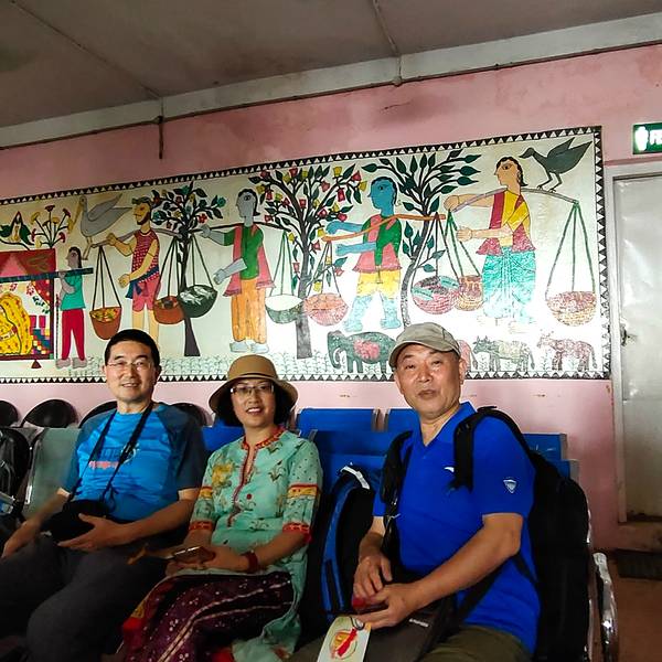 贾纳克普尔机场很小,很简陋。和贾纳克普尔机场的美女服务员合影。贾纳克普尔机场候机中