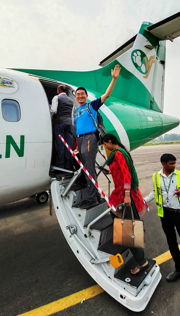 中午乘座尼泊尔国内航班离开贾纳克普尔前往加德满都,虽然空中飞行时间只有30多分钟,可是,如果从贾纳克普尔乘汽车返回加德满都,由于道路非常糟糕,大约需要一整天的时间,因此,摄影团安排这趟飞机是非常值得...