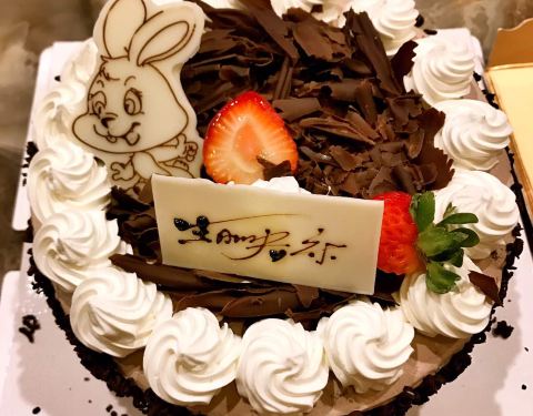 跟妹妹去买的蛋糕。挺好吃的。她很开心。边走边唱生日歌哈哈哈哈哈