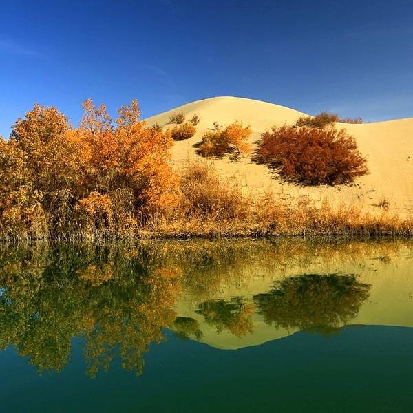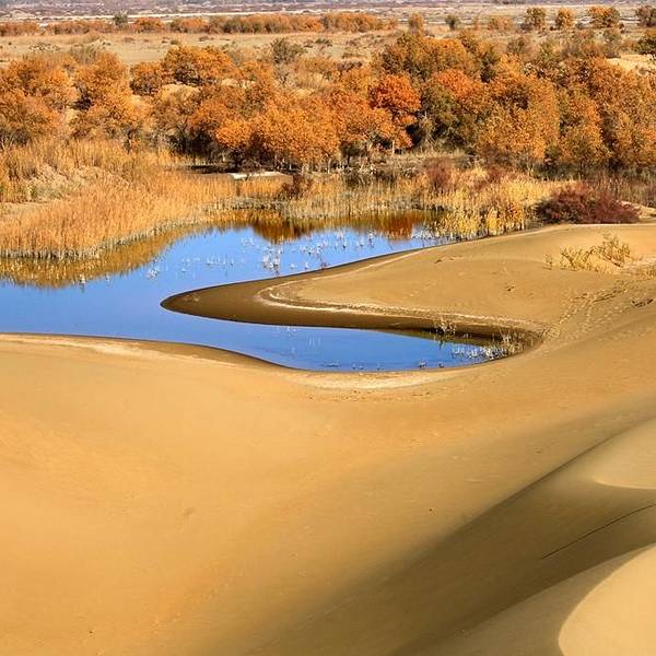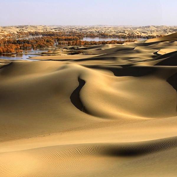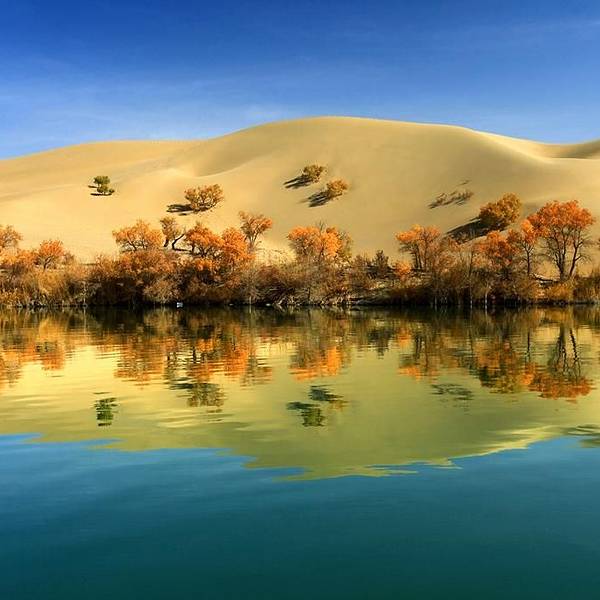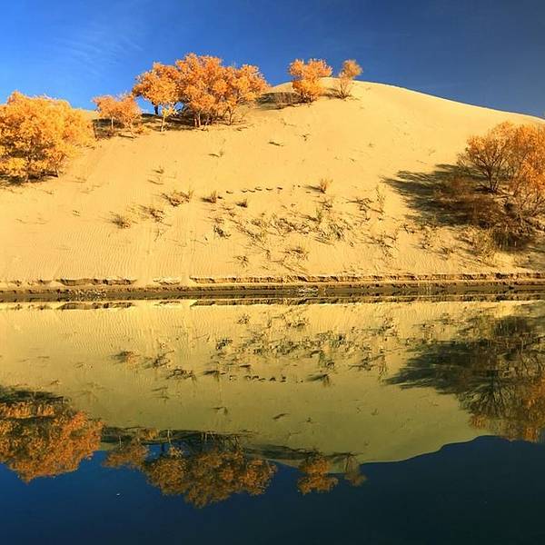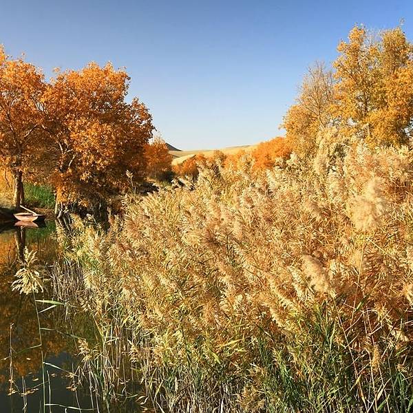 葫芦岛是一个葫芦形的湖泊,是塔里木河在下游的一处弯道,其特色是水中有岛,沙中成林。蓝天白云下,湖泊与胡杨静卧于大漠中,连绵的沙丘、茂密的胡杨树与碧绿的湖水浑然一体,满世界是绚丽的金黄。葫芦岛可谓是...