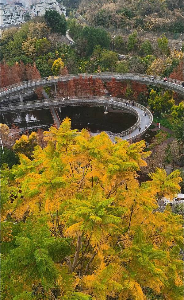 ...设计的城市森林栈道,将左海公园、梅峰山地公园、金牛山体育公园、国光公园、金牛山公园串联在了一起
