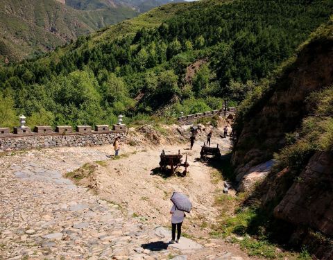 天险门是雁门关的南门,高大雄伟,城门上有城楼名为雁楼,城门外一条山路蜿蜒伸向山下,通往中原腹地。山路上还布置了一些反映古代商旅来往的场景,这里曾是通往关外的唯一通道,站在城门外,依稀似乎能看到当年的热闹非凡。