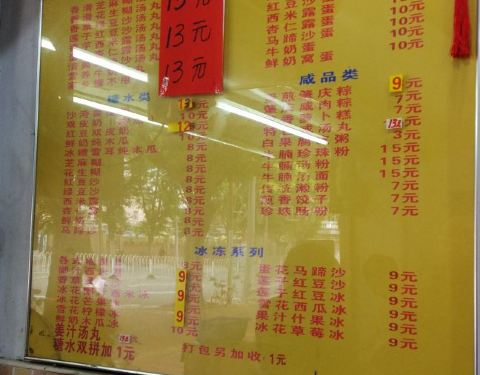 - )甜品很多,见我的图片吧,价钱不贵的十元八块占数,个人最爱姜汁撞奶,醒胃消滞,芝麻糊也不错