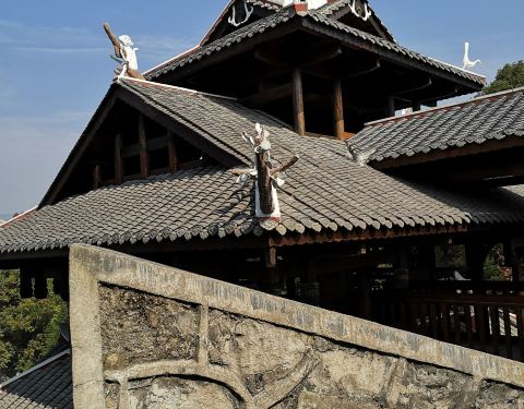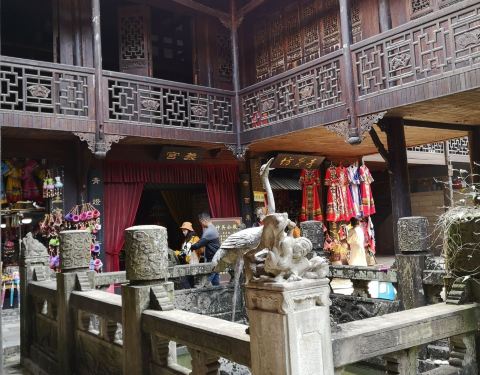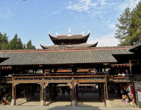 恩施土司城九進堂:是恩施土司城内的主体建筑,由祠堂和庄园两部分组成。九進堂依山而建,为土家族干栏式吊脚楼建筑群落。其将传统的土家吊脚楼、摆手堂、官言堂、书院、月台、戏楼融为一体,亭台楼角、高低上下...