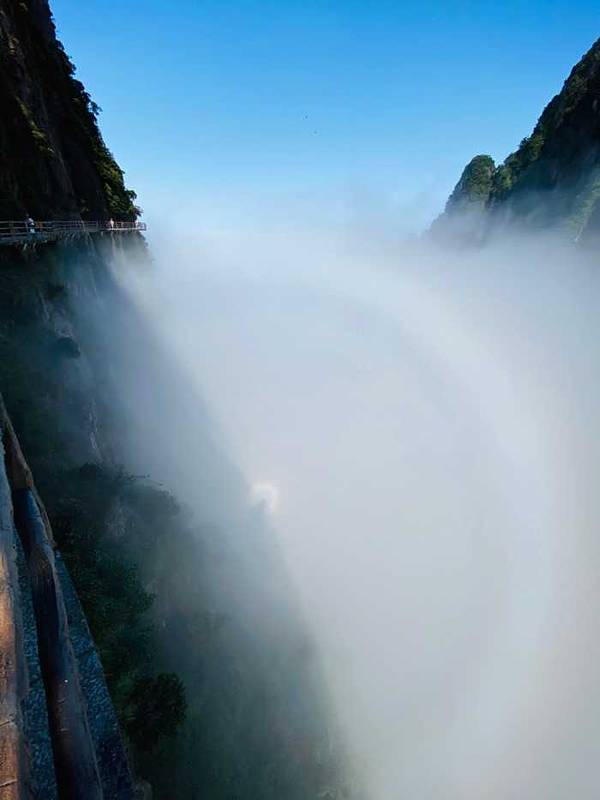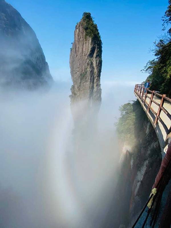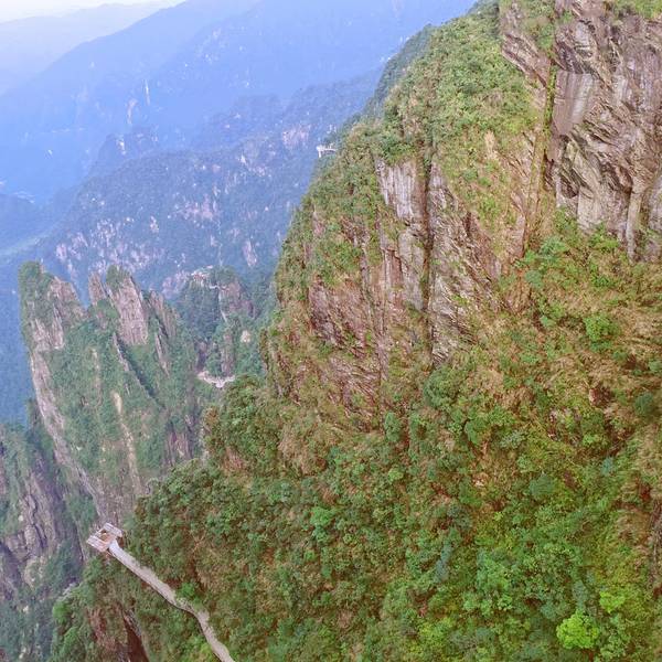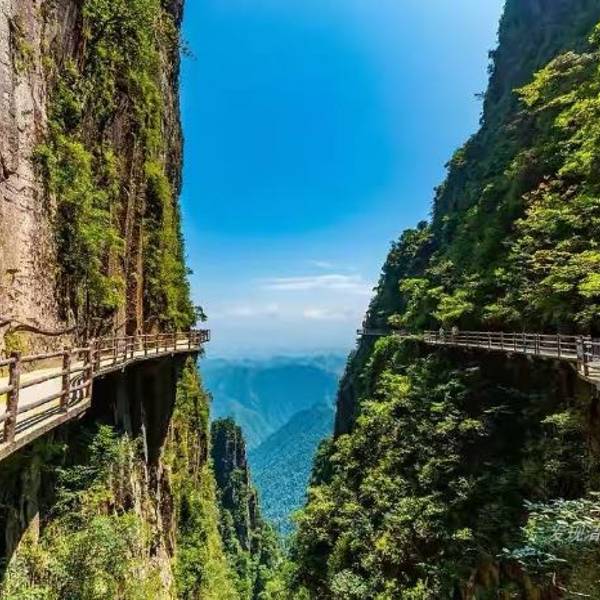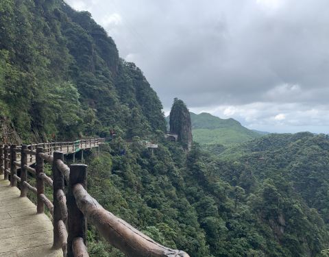 ...气特别清新,有恐高的人不要往下看,很高有点吓人,山间经常起云雾,仿佛到了仙境,运气好还有云海看昨天刚去玩了一天,谈谈感受!好的方面:缆车可以直接上山,平稳安静,爬山不累,老人家也可以去。山很险峻奇特,走在崖壁栈道上很刺激,景色确实漂亮,空气特别清新,有恐高的人不要往下看,很高有点吓人,山间经...昨天刚去玩了一天,谈谈感受!好的方面:缆车可以直接上山,平稳安静,爬山不累,老人家也可以去。山很险峻奇特,走在崖壁栈道上很刺激,景色确实漂亮,空气特别清新,有恐高的人不要往下看,很高有点吓人,山间经常起云雾,仿佛到了仙境,运气好还有云海看。需要改进提升:1.进山的路弯道的镜子有得没有放好,有的倒了,影像安全,路也不够宽,考验车技。2.景区由于施工,一些安全设施做的不太到位,带小孩的一定注意,3.景区就一个餐厅,没有其他选择,购物点也很少,建议自带食物,4,下山有一节路正在修,临时的木楼梯有点不稳,小孩和老人一定不太方便.5.景区还有一部分景点没有开放,正在施工🚧。