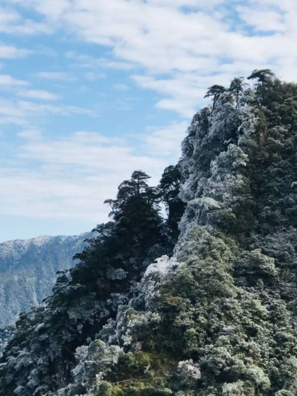 我们则抱着试试看的心理,继续前进。越往上山风也就越大,吹在身上凉飕飕的,身上的夏装显然无法抵御这凛冽的寒风。很快就来到山顶的观景平台,从这里可俯瞰五指峰景区全貌,果然是风光无限。这座观景平台搭建在山顶之上,更显险峻,很多怕高的人,还没上去腿就开始抖了。