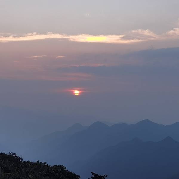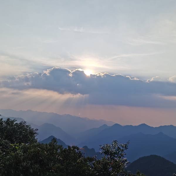 而这段辉煌时刻是短暂的,很快,太阳便消失在地平面下,天也马上开始变得暗了起来,总算不虚此行!叫花鸡万寿塔大天台太阳快要下山俯瞰五指峰日落太阳坠入地平线崇山峻岭 展开