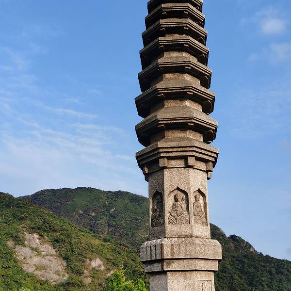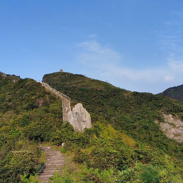从这里登上 天台 山的峰顶,大概需要半个小时,全程都是登山石阶,前半段在密林中穿行,到了万寿塔后,直行就是 天台 寺,小 天台 就位于寺庙前,继续往前就能进入五指峰。万寿塔的旁边还有一条石阶,直 通山 顶,那里就是大 天台 。