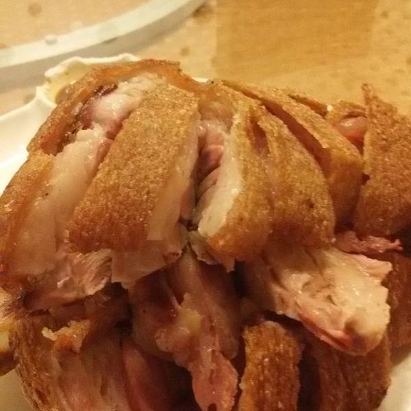 上菜皇牌脆皮猪手,外脆里嫩,跟德国猪手一样,还是不错,值得推荐,不过外皮过脆,牙口不好要注意色