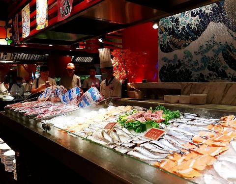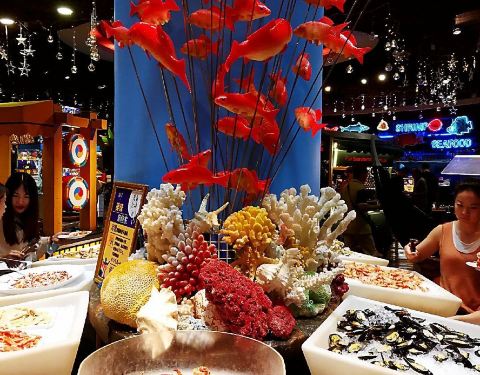 老公生日和家人朋友一起去的,生日凭身份证买二送一(只能送一个哦),1.1米以下儿童免费,60以上老人又有折扣,所以划算的不得了。主要地方够大,环境还不错,食材也挺新鲜的,品种也多。晚上还有歌舞表演。 - 以海鲜、日料最为丰盛。出品有中餐、西餐、日料、火锅、烧烤等等