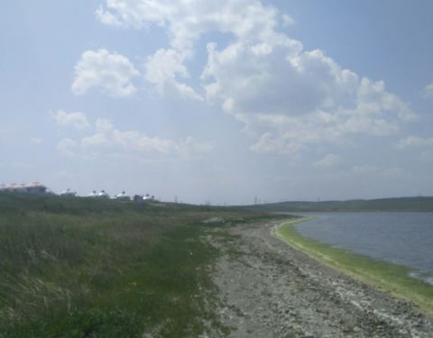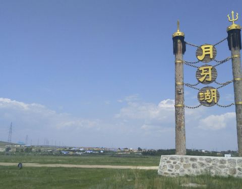 这是在去呼伦湖的路上一处小湖,因为湖型如同一弯牙而得名。湖虽然没有呼伦湖大,但这感觉与草原更亲近。湖边有个大型的渡假村。