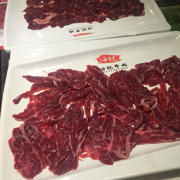 这里的锅底大都很清淡,吃的是牛肉的原汁原味。我们点的这个是牛骨菌菇锅底。几乎没有味道,但最后整锅汤成了真正的牛肉汤。由于这里的牛肉都是热气的,所以肉都切得比较厚,虽然每盘数量不多,但实际还是挺合算...