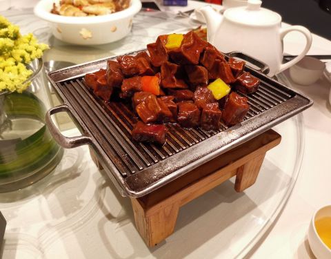 老字号餐馆了,舒适高档,隐蔽性很强,柚子皮焖鹅,完全吸收了汤汁的精华,鹅肉一点都不硬,软滑可口。安格斯牛肋条,厚切,牛肉很香,配上特制的酱汁很不错。土鸡,很好吃,鸡味浓郁。