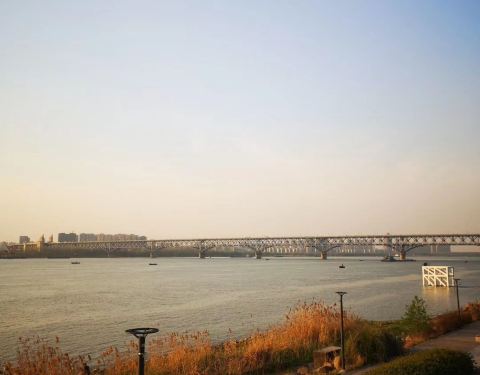 面临长江,视野很好,不远处是火车栈桥遗址和南京长江大桥。滨江风光带里的一环,主题公园中有火车,站台