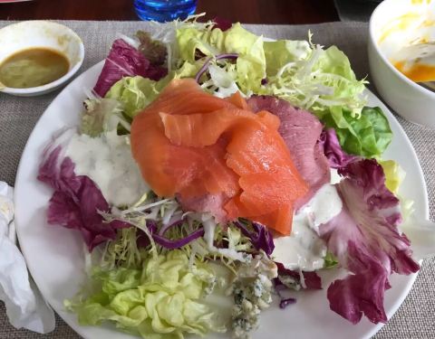 味道不错,沙拉是自由组合,很喜欢吃这些蔬菜,甜品蛋糕款式实在很多,没有一一吃了,根本吃不完的,...