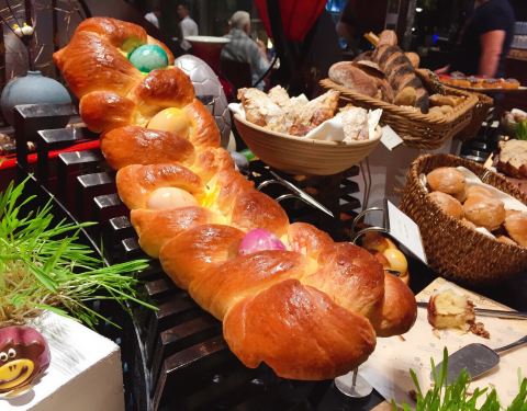 妙趣咖啡厅·自助餐(香格里拉大酒店) 位于会展东路1号香格里拉大酒店1楼 妙趣咖啡厅拥有琳琅满目的特色美食,以龙虾海鲜为主题的自助晚餐 选用优质食材,于16个美食餐台呈献 ,超过百道的菜品 每个餐台都能给你不一样的视觉冲击 摆盘精致,造型精美,味道精良 更有不少大厨大展身手的窗口 在等待美食的同时也一饱眼福 「芝士春茶」 经理介绍是比喜茶还要好喝的特制茶 塔米一尝,果然名不虚传 而且不是每个季节都能喝到 是春季特饮哦,值得点赞的味道 「海参 黑松露春笋」 经理说只有两个月是适合吃春笋的季节 海参确实好好吃 芦笋比春笋好吃点 因为春笋有点老了 「牛肉面」 汤底用牛骨熬制6小时 味道很浓 「汤」 里面有海螺 所以味道比较腥 而且汤的味道挺淡的 「鲍鱼」 汁稍微少了些 口感还是很ok的 「鱼扒」 稍微有点腥,还是配上蔬菜的做法好吃点哦 「牛扒」 肉眼可见的肉肉肉肉肉 厨师帮忙切片,想吃多少切多少 「龙虾」「芝士焗龙虾」 个人喜欢热菜 但是经理比较推荐冰鲜的 因为保存了海鲜的鲜味 「青口」 肉质丰厚 口感新鲜 「甜点」 吃了三四种甜点 最有印象的应该就是朗姆葡萄酒冰激凌 酒味淡淡的