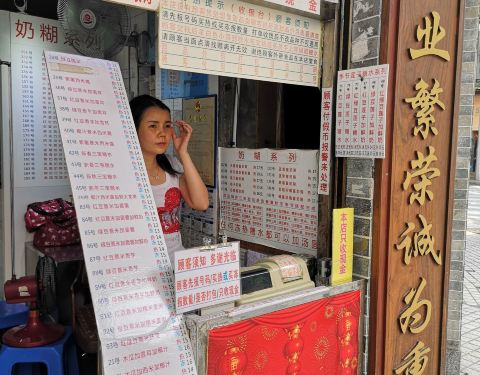 - 老字号甜品店,环境一般,但甜品水准非常高,生意自然十分火爆。写了满满一墙