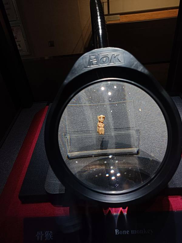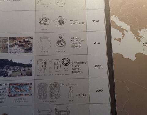 二里头遗址作为夏朝中晚期的都城,被誉为“最早的中国”。城区有着清晰的规划,比如宫殿区位于核心以凸显王权,丧葬等级制度也反映了等级分化,也出土了大量宝贵的遗物。二里头整体展品很精美,多媒体展示部分令人惊艳,非常适合用来做教学@@据说是博物馆和公司制作的,还未上线,所以没能找到视频资源挺遗憾的,我录了好几次效果都不太好。做课件的时候一直找不到清晰的夏代世系表,结果现场拍照取材了。骨猴,用放大镜才能勉强看清,是用动物骨骼雕刻制作的微雕精品。镶嵌绿松石兽面纹铜牌饰,数百颗绿松石镶嵌在铜牌饰上,历经三四千年无一脱落。出土时放在墓主胸部,是二里头文化的镇馆之宝之一。
