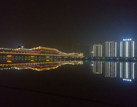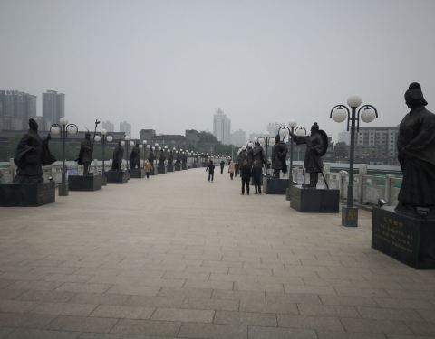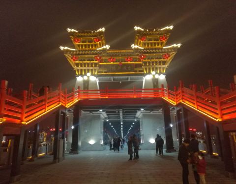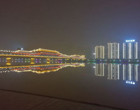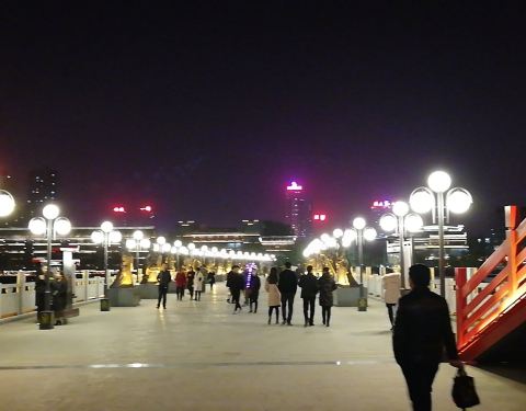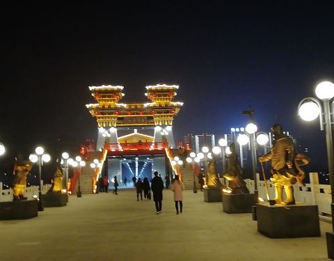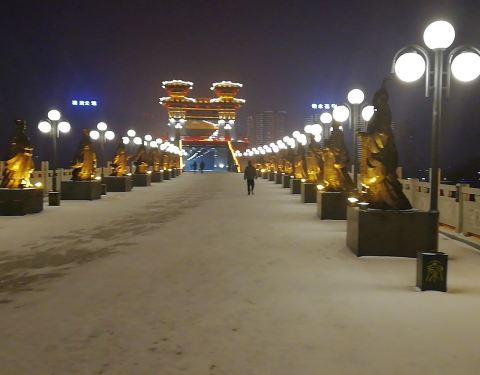 夜景不错的,桥头有两排雕像,古代人物。桥上有两层。桥下渭水滔滔。