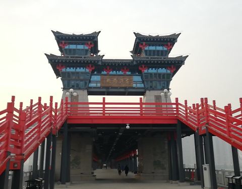 咸阳古渡廊桥是修建在咸阳市区内渭河上面的一座风景步行观光桥。这座桥修好以后,对河南河北两岸的人民群众的出行带来了很大的便利,唯一的缺点就是只能步行。桥采用混凝土钢架结构,整个的大秦时期的古风貌建筑...