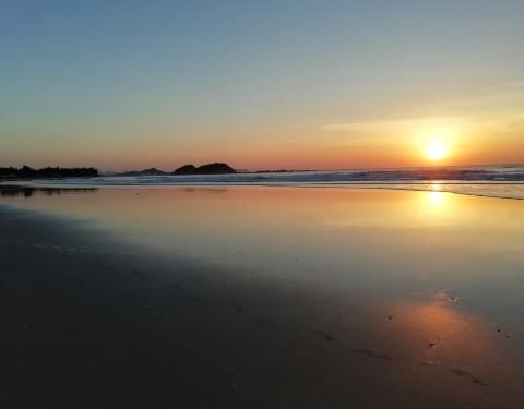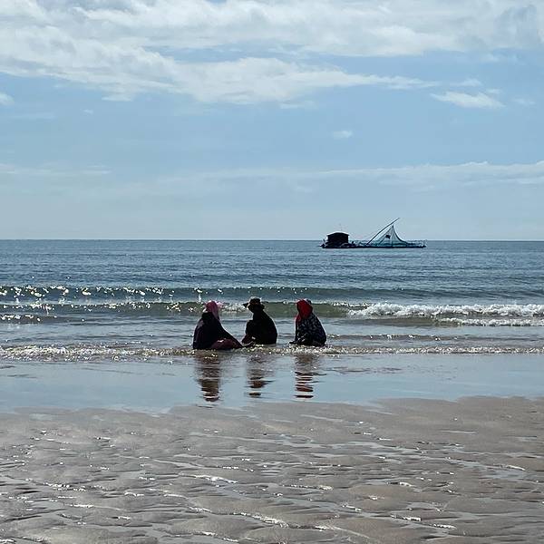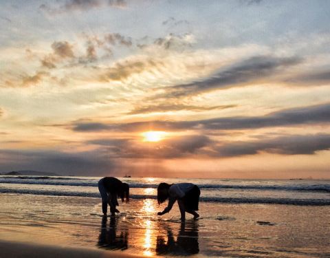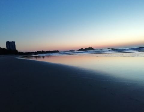 开车也是10几20分钟就回到公寓,换好衣服就往金銮湾走..沙子很细,海水很清也很浅,浪也不是很大,很适合像小孩子或者像我这样不会游泳的在嬉戏玩闹...我们就这样一直等到太阳落山..浪潮退却后是非常让人惊喜的沙滩..沙子如镜面..怪不得有“天空之镜”得美称..因为实在太美啦..我一直不肯走..我姐他们带小孩先回去洗澡煮海鲜大餐..我一直等到夜幕降临才恋恋不舍得回公寓..如果早上能看到日出配上这天空之镜简直完美啦..