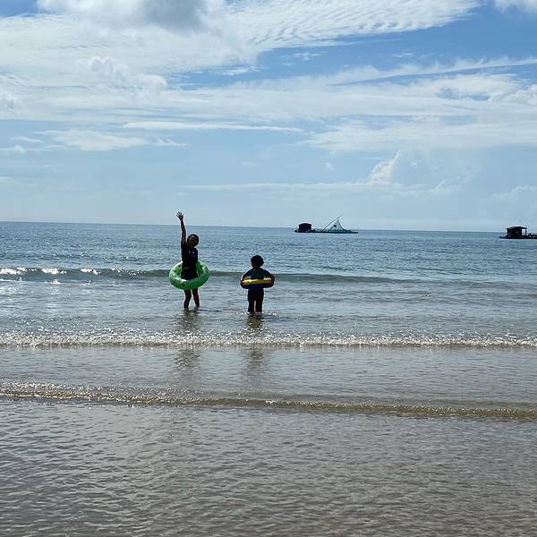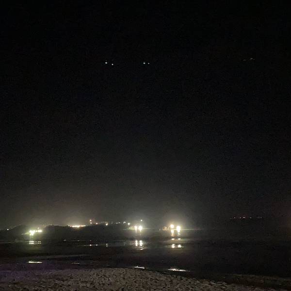 方向感弱的人真的是同一条路,早上与晚上是完全不一样的..小区很美很大,以前曾经应该很辉煌,或许经过疫情这几个月..很多店铺设施都荒芜啦,路灯也不开..走到一半时迷路啦,看来不是住别墅的命..打电话急Call姐夫来救命..好不容易等到我姐夫来一起走到的沙滩..一看失望也挺大的..跟昨晚的马銮湾好像不同的世界..人少得可怜,除了海面渔船有灯之外(我在想这些渔船是不是在南门玩推销的那种“晚上出海下小管”)而传说的篝火晚会,呵呵..就是几个人围着一堆柴在沙滩烧火..那烟花就是海边别墅自己玩闹放的..果断走了一圈就回去咯