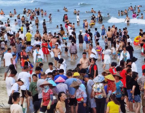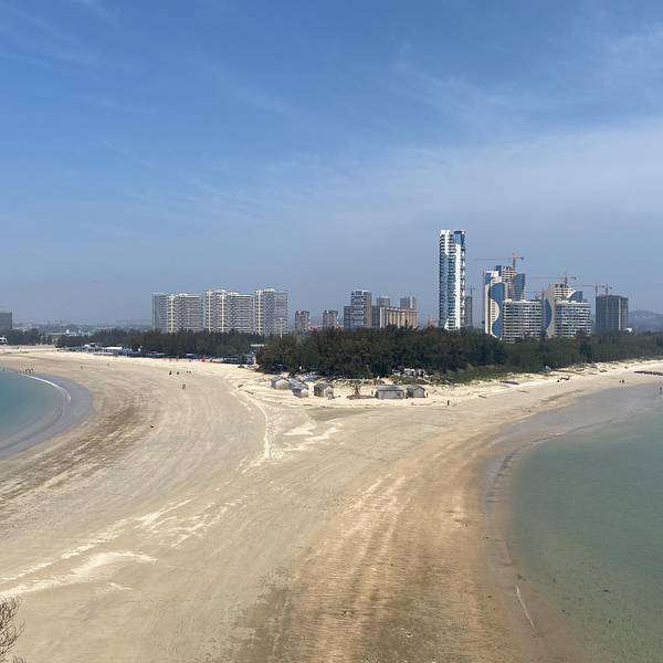五一前真是没啥人,整个海滩都可以承包了这个海滩真的不错,我们就住在能看到的最高那个楼,视野超级好