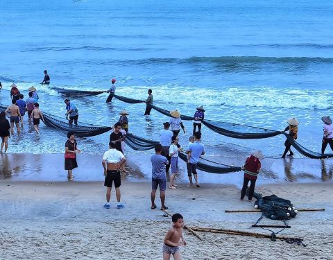 金銮湾沙滩去欣赏拉网风情,景色宜人,趣味性强,很有兴趣,场面壮观,性价比超高的,知道一看,适合...金銮湾沙滩去欣赏拉网风情,景色宜人,趣味性强,很有兴趣,场面壮观,性价比超高的,知道一看,适合拍照的好地方,棒棒的哦!不错。