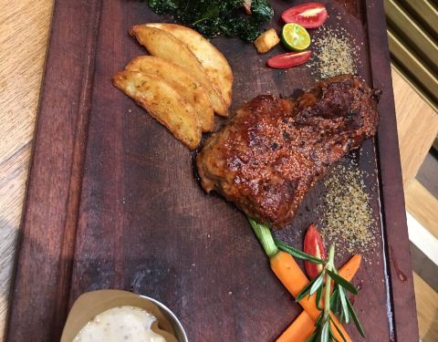 离屋企较近、价格相对实惠的西餐厅,虽然无好既气氛,但点野的味道吾错。碳烧猪颈扒、盐稣鸡、焦糖吐司金字塔、 猪小扒味道吾错,每次去必点,值得推荐。今次去点左个卡朋大杂扒,里面的猪扒好难吃,建议吾好点。