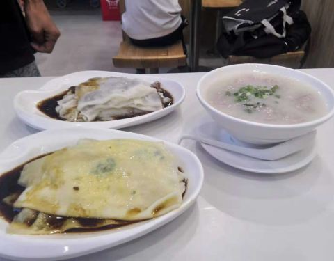 肠粉软滑不粘牙,粥绵滑,味道稍淡但健康,我喜欢。