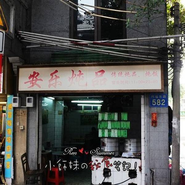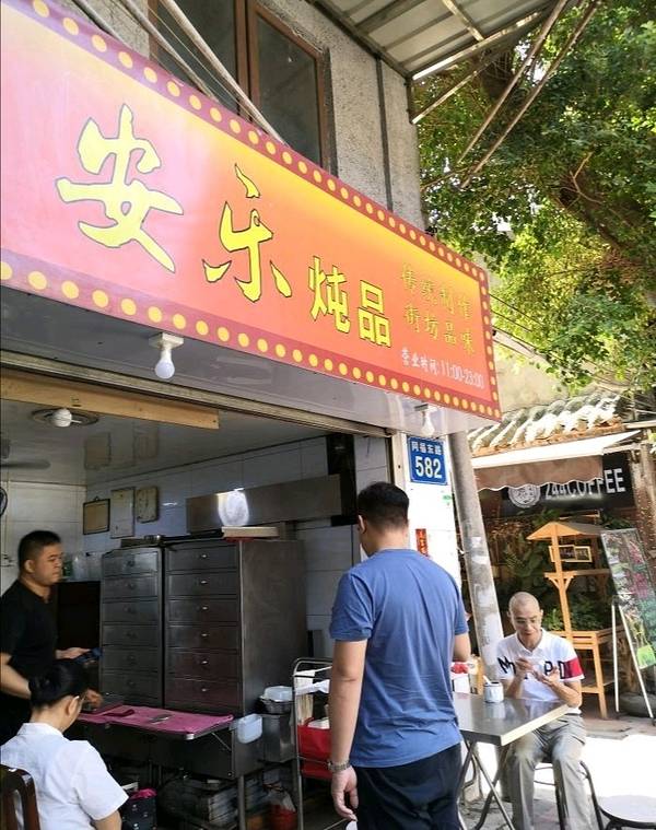 今天来给大家写点好吃的东西吧。安乐炖品店,同样是位于同福路,就开在芬芳的斜对面。不知道是不是因为人哥到的点数不对,店里头居然一个客人也没有。老板娘神态慵懒地闲坐在那里,也没有半点着急的意思。这地方...今天来给大家写点好吃的东西吧。安乐炖品店,同样是位于同福路,就开在芬芳的斜对面。不知道是不是因为人哥到的点数不对,店里头居然一个客人也没有。老板娘神态慵懒地闲坐在那里,也没有半点着急的意思。这地方横看竖看都不像是个觅食的地儿。人哥抬头,头顶的红字招牌分明写着安乐炖品四个大字,但颜色已经几乎褪尽。墙上斜挂着的一张大餐牌估计至少也得有个十年的历史了。也不知道是为了省事还是省钱,餐牌上面打满了大大小小的补丁,极度的不和谐。唯有那个破败的贴着白色瓷砖的灶台上垒着的几落不锈钢蒸笼稍微显得光鲜一点点。若是按照常理去推断,老板跟本就没有在用心经营这家店子。连装修都如此不讲究,又如何能够勾起客人的食欲?然而事实证明,经验往往是一件很不靠谱的东西。若被老板看到人哥以上的点评,估计会竖起中指,很不屑地来一句:“I don’t give a shit!”既然是来吃东西的,扯这些乱七八糟的东西干啥?