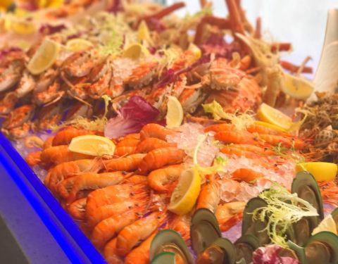 菜品琳琅满目,晚市共200款食品.主营地中海菜式,西班牙海鲜饭、中东烤鸡、现开的法国生蚝、牛肉羊肉都是进口食材,且以澳洲为主,所有出品都用橄榄油,更为健康.晚市都会赠送半只波士顿焗龙虾给食客,更显尊贵,...